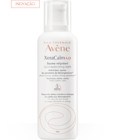 XeraCalm A.D Bálsamo relipidante D.E.F.I. nutre a pele muito seca e acalma a sensação de prurido, para adultos, crianças e recém-nascidos com pele muito seca de tendência atópica com prurido.
