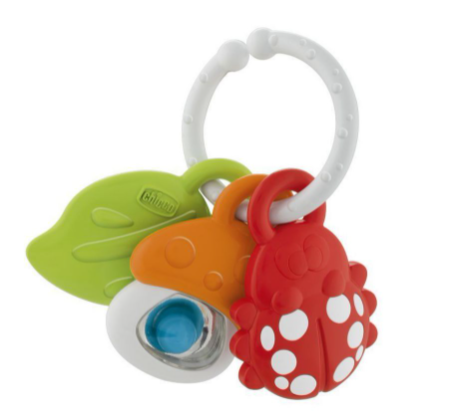 3 brinquedos com funções diferentes: 1 folha mordedora, 1 cogumelo com efeito ótico, 1 joaninha em plástico macio para desenvolver as capacidades visuais.