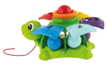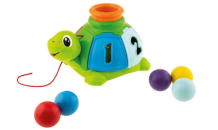 Uma tartaruga eletrónica de puxar que ensina os primeiros números, ajuda a compreender a relação causa-efeito e estimula várias atividades manuais.